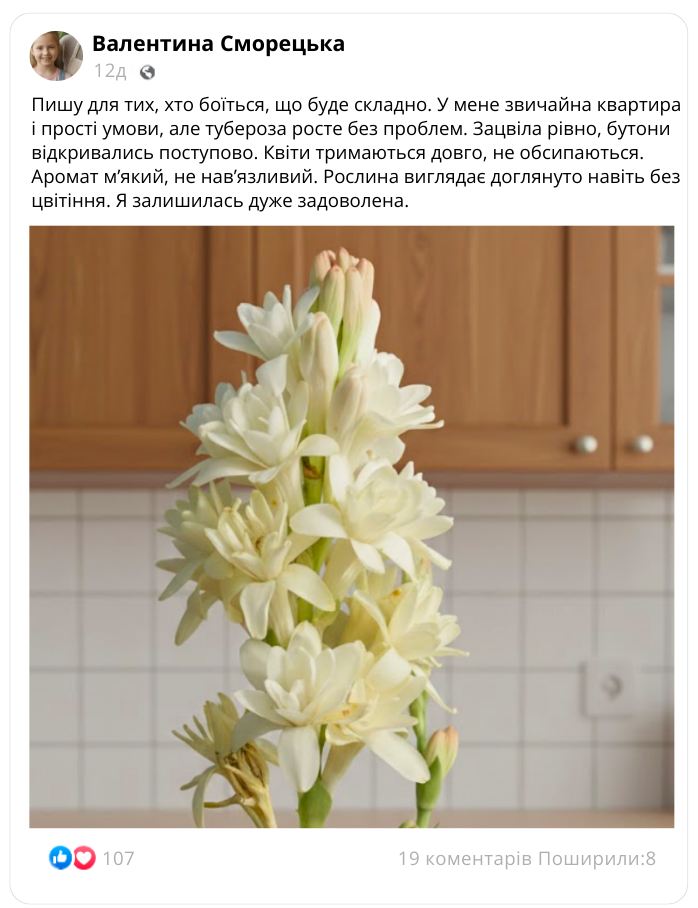 Переконайтеся, як елегантна тубероза оживляє простір і наповнює його ніжним ароматом